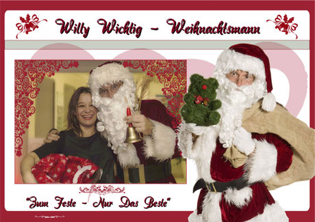 Ob Weihnachtsfeier in Wiesbaden oder Winterberg, Advent-Singen in Augs- oder Aschaffenburg, Bescherung in Berlin oder Baden-Baden; "Willy" passt durch jeden Kamin und es gibt kein Xmas-Terrain, auf dem er sich nicht schon geschmeidigst und zur Zufriedenheit der Erden-Kinder - groß & klein - bewegt hätte.