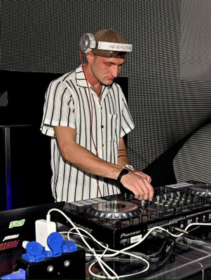 Vinyl-Sets und sorgt dafür, dass der Clubboden unter den Füßen der Tanzenden bebt. Mit seinen markanten Sounds und kreativen Scratchings bringt er die richtige Energie direkt auf die Tanzfläche.
